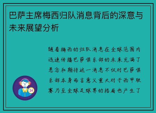 巴萨主席梅西归队消息背后的深意与未来展望分析